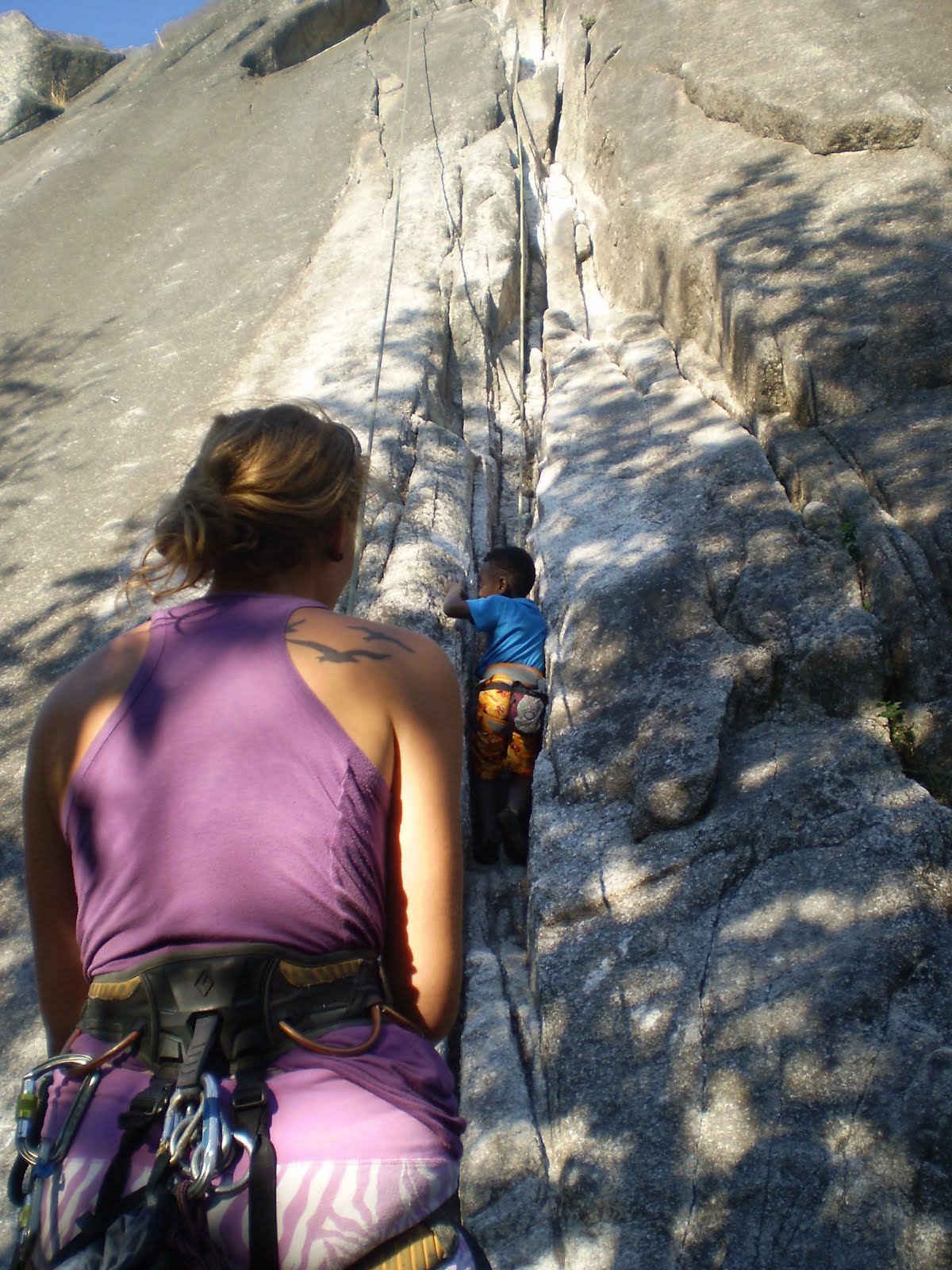 Nelson's first climb of the day & first in Squamish, B.C. Different kind of rock climbing here, the rocks are flat & you crack climb.